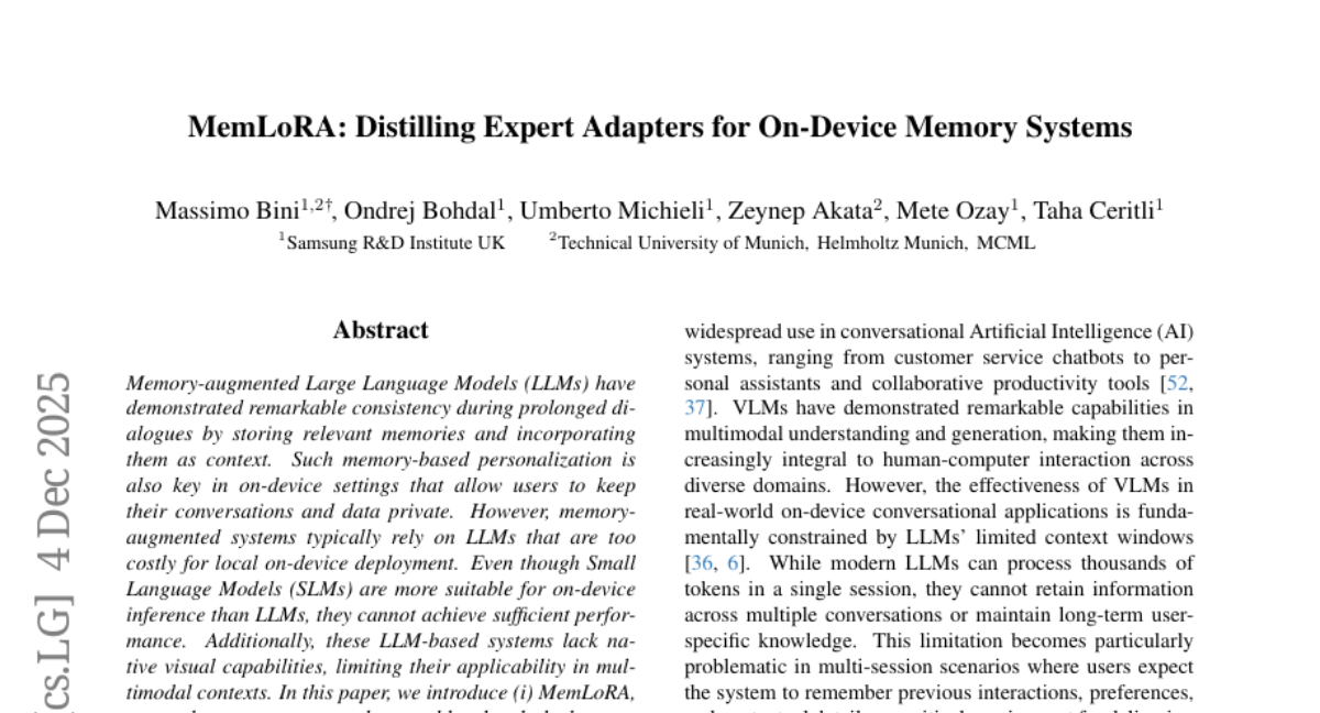 ๐ Keywords: Memory Adapters, MemLoRA, Multimodal Contexts, AI Native, Small Language Models