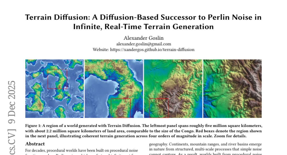 – The study introduces Terrain Diffusion, an innovative AI-driven successor to Perlin noise, aimed at generating realistic, seamless, procedural worlds using diffusion models.