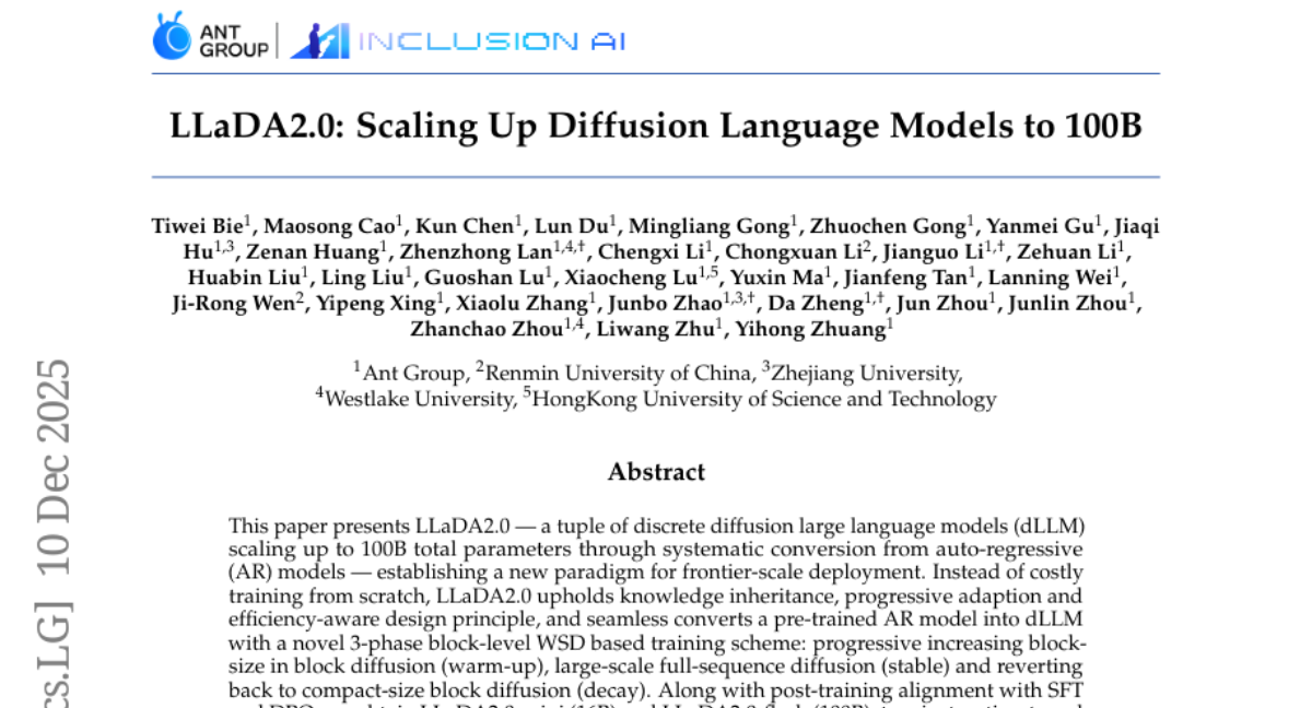 – The research successfully develops LLaDA2.0 models, specifically LLaDA2.0-mini (16B) and LLaDA2.0-flash (100B), which are optimized for practical deployment, showcasing enhanced performance and efficiency through innovative training and parallel decoding strategies. Both models have been open-sourced.