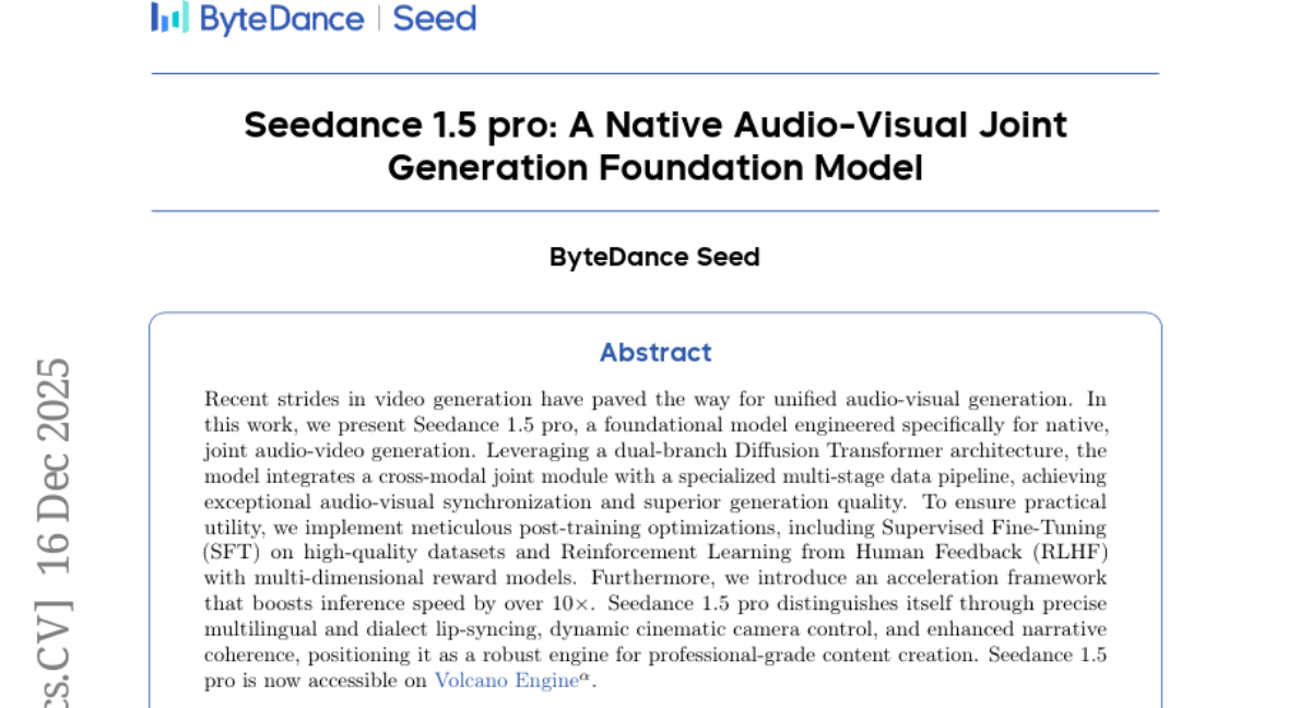 – The study introduces Seedance 1.5 pro, a model designed for native, joint audio-video generation using a cross-modal integration method for enhanced synchronicity and quality.