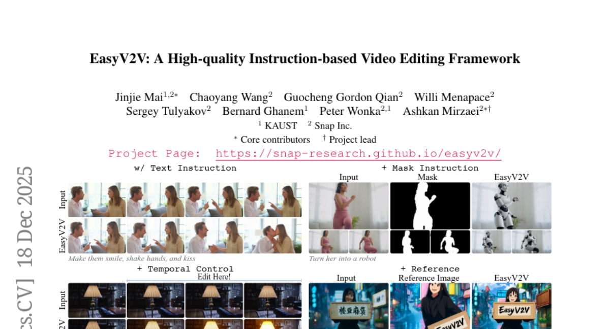 – EasyV2V framework effectively processes flexible inputs and achieves superior video editing results, outperforming existing commercial and concurrent systems.