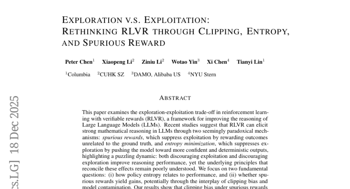 30. Exploration v.s. Exploitation: Rethinking RLVR through Clipping, Entropy, and Spurious Reward