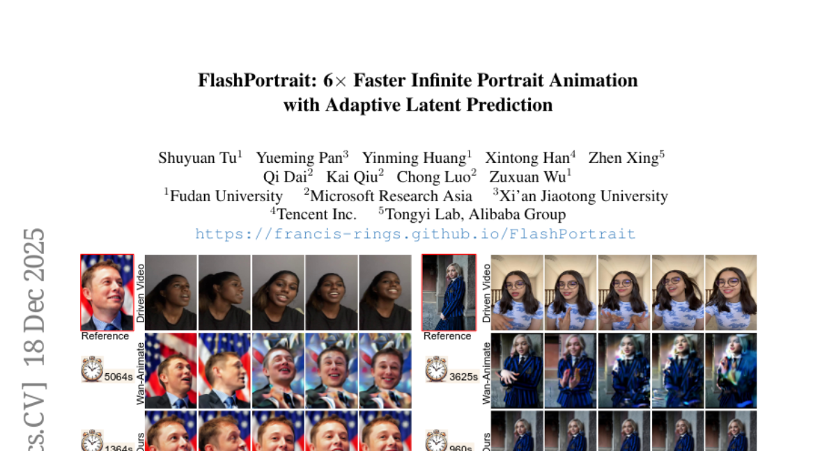 10. FlashPortrait: 6x Faster Infinite Portrait Animation with Adaptive Latent Prediction