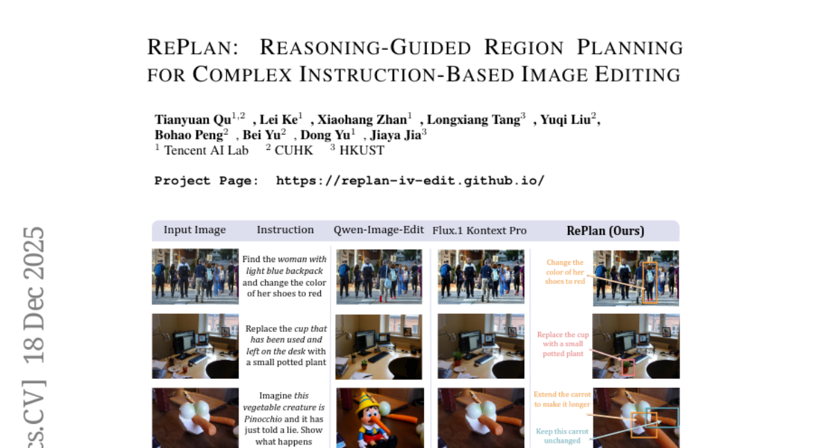 ๐ Keywords: RePlan, vision-language planner, diffusion editor, Instruction-Visual Complexity, attention-region injection mechanism