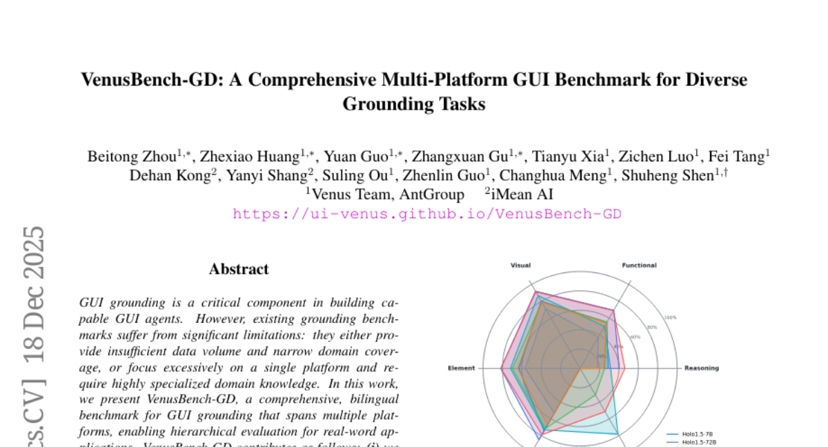 – To introduce VenusBench-GD, a comprehensive, bilingual benchmark for GUI grounding that crosses multiple platforms and provides hierarchical evaluation for real-world applications.