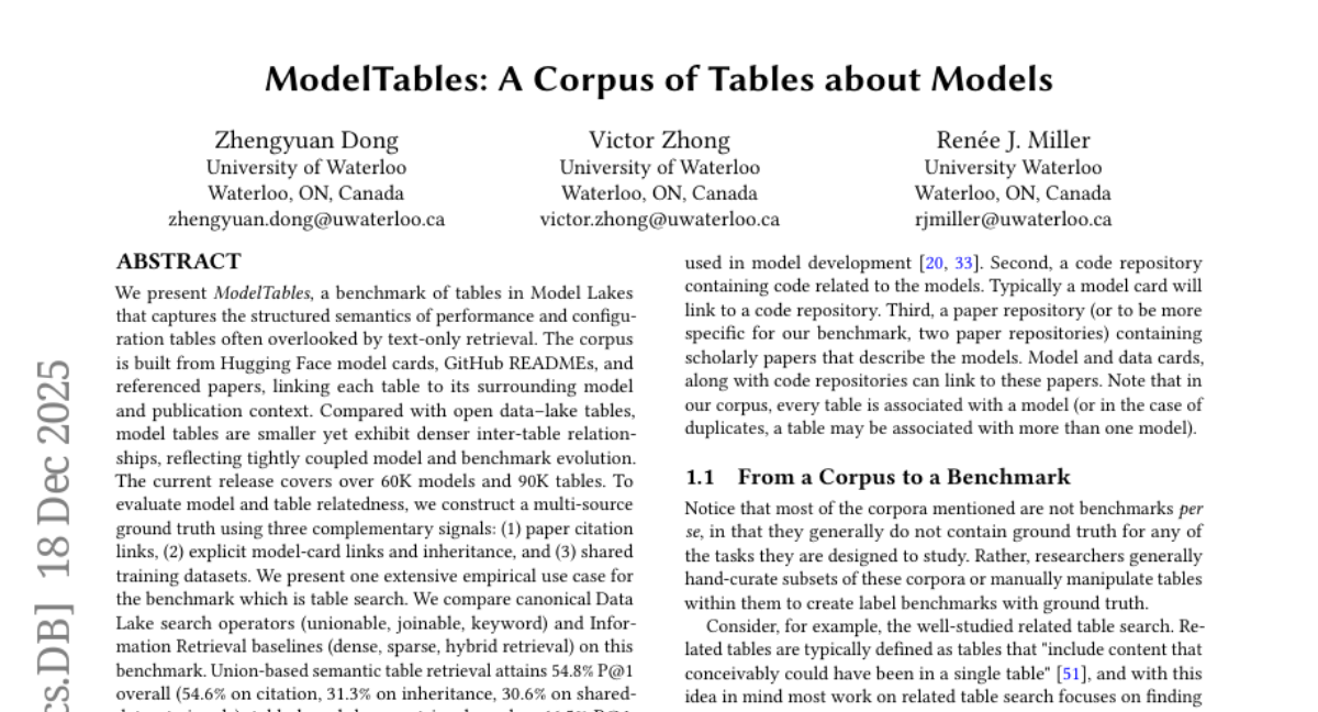 – The release of ModelTables provides a large-scale benchmark, guiding the development of more accurate semantic retrieval and organization of structured model knowledge.