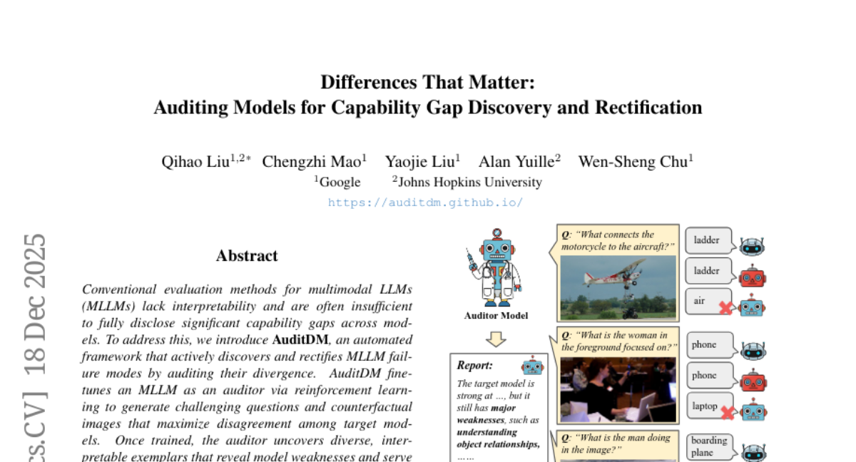 – Introduce AuditDM, an automated framework to identify and rectify failure modes in multimodal LLMs by generating challenging examples.