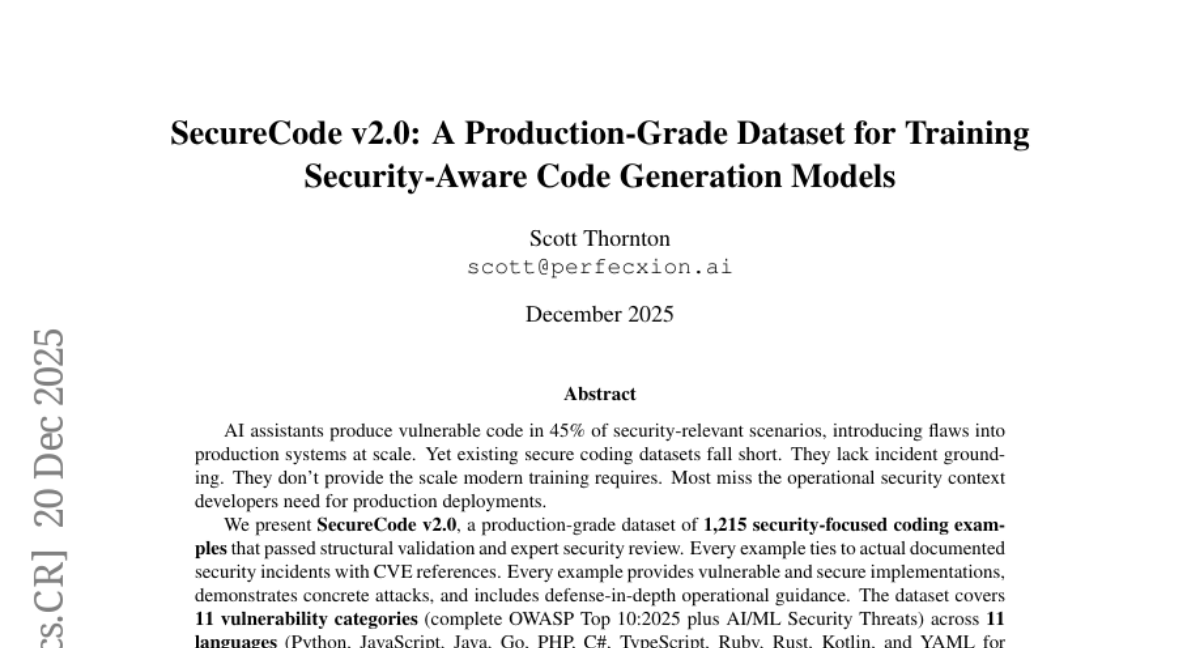– To present SecureCode v2.0, a comprehensive dataset of security-focused coding examples that is production-grade and rigorously validated.