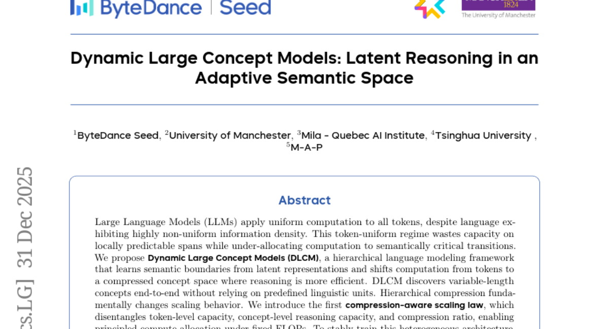 – To enhance the computational efficiency of Large Language Models (LLMs) by introducing Dynamic Large Concept Models (DLCM) which allocate computation based on semantic significance rather than uniform token processing.