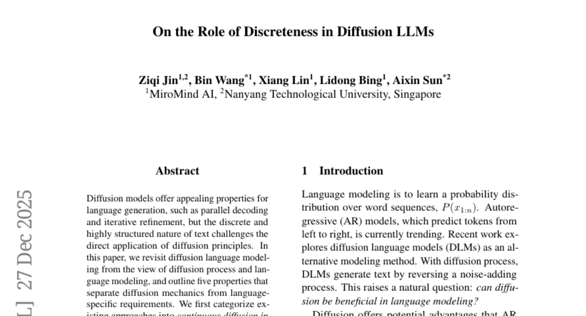 – This paper revisits diffusion language modeling by analyzing the diffusion process and outlining critical properties distinguishing diffusion mechanics from language-specific needs.