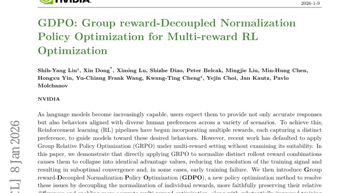 1. GDPO: Group reward-Decoupled Normalization Policy Optimization for Multi-reward RL Optimization