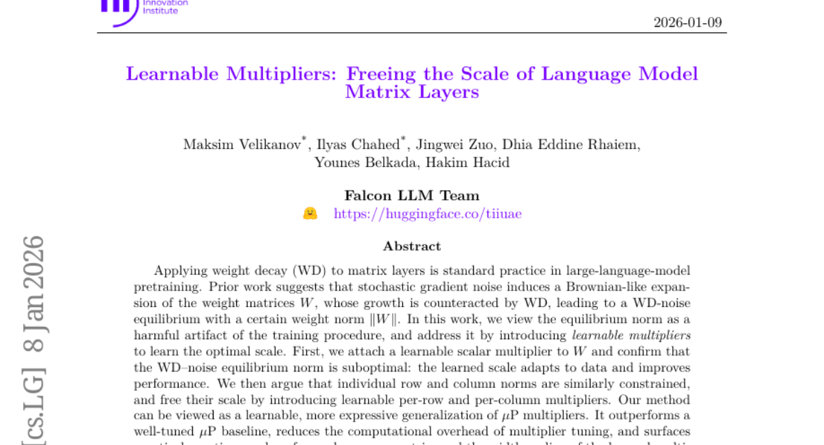๐Ÿ”‘ Keywords: learnable multipliers, weight decay, stochastic gradient noise, large language model training, muP multipliers