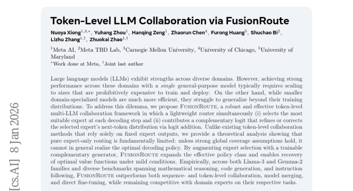 – Address the challenge of balancing efficiency and performance in large language models by introducing FusionRoute, a token-level multi-LLM collaboration framework.