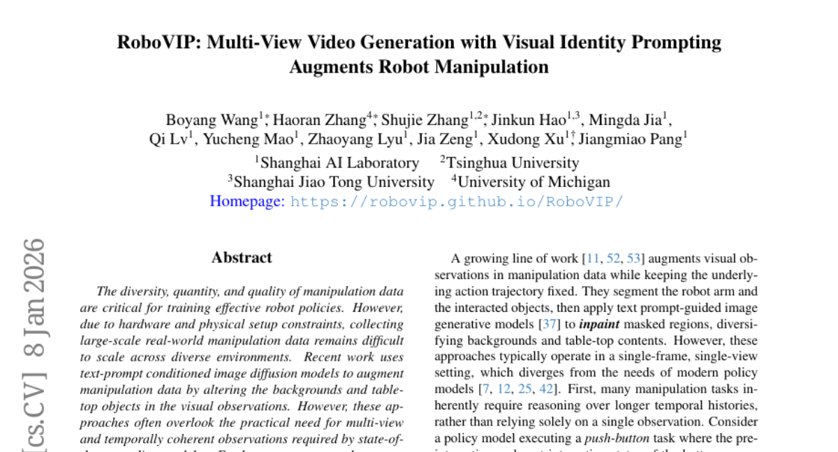 3. RoboVIP: Multi-View Video Generation with Visual Identity Prompting Augments Robot Manipulation