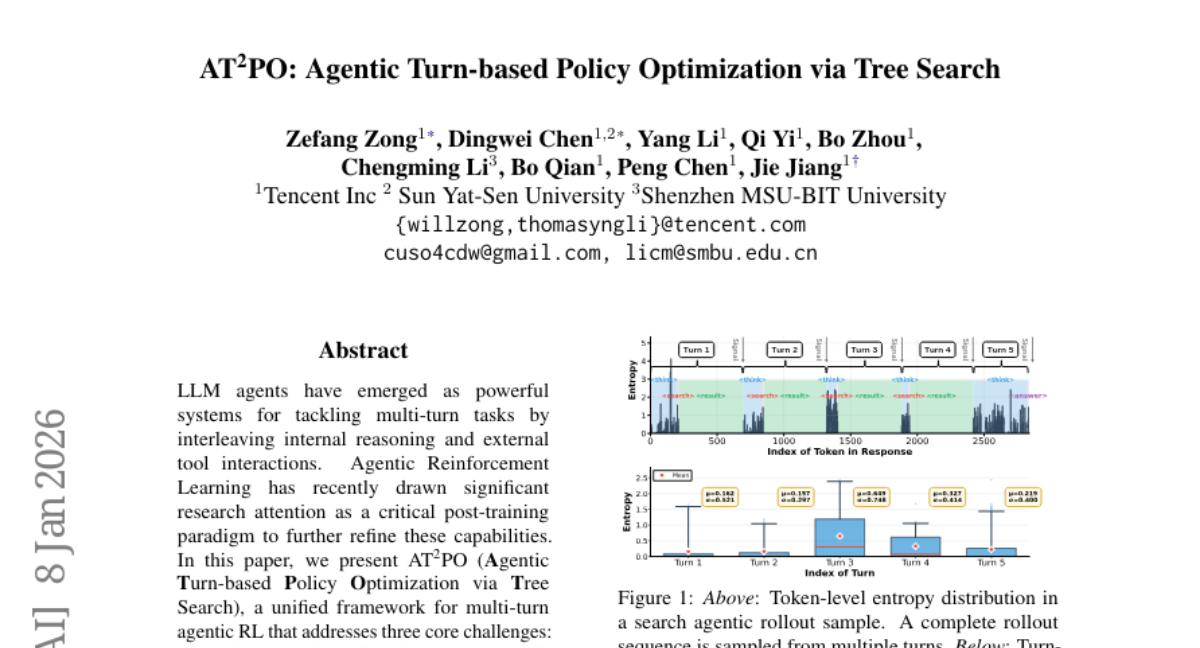– The research introduces ATยฒPO, a framework that enhances multi-turn agentic reinforcement learning by addressing exploration diversity, credit assignment, and policy optimization challenges.