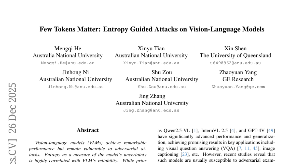 ๐Ÿ”‘ Keywords: Vision-language models, Adversarial attacks, High-entropy tokens, Semantic degradation, Transferability