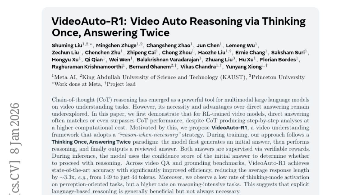 ๐Ÿ”‘ Keywords: AI Native, VideoAuto-R1, reason-when-necessary strategy, verifiable rewards, confidence score