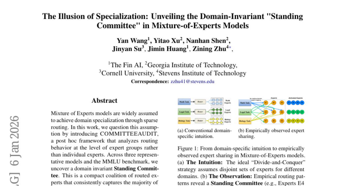 ๐Ÿ”‘ Keywords: Mixture of Experts, domain specialization, COMMITTEEAUDIT, Standing Committee, routing behavior