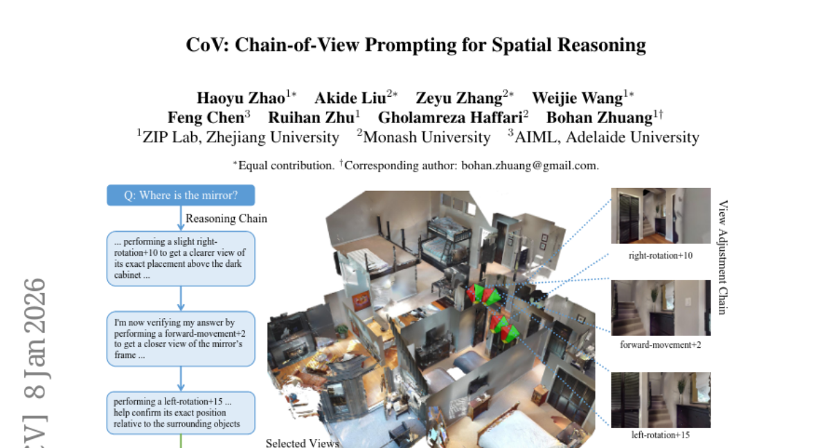 – Introduced a Chain-of-View (CoV) prompting framework that employs a View Selection agent to select relevant anchor views and iteratively adjusts camera positions through a coarse-to-fine exploration approach.