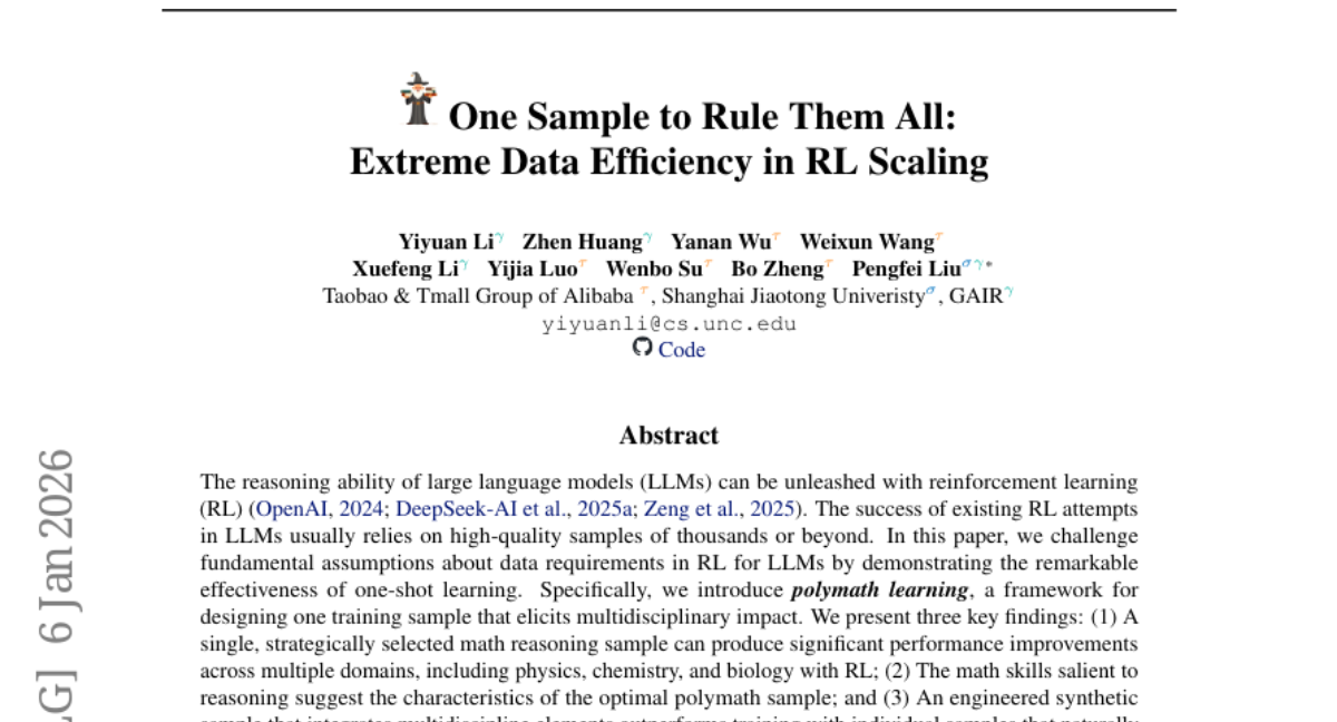 25. One Sample to Rule Them All: Extreme Data Efficiency in RL Scaling