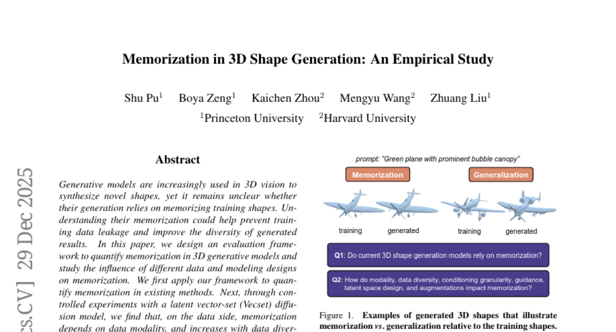– To develop a framework for quantifying memorization in 3D generative models and to identify how data modality and model design influence this memorization.
