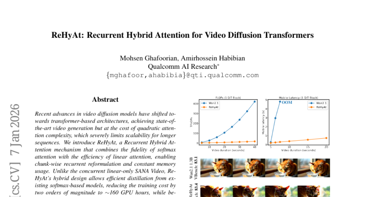 – ReHyAt reduces attention cost from quadratic to linear while maintaining state-of-the-art video quality, significantly lowering training costs and unlocking scalability for long-duration and on-device video generation.