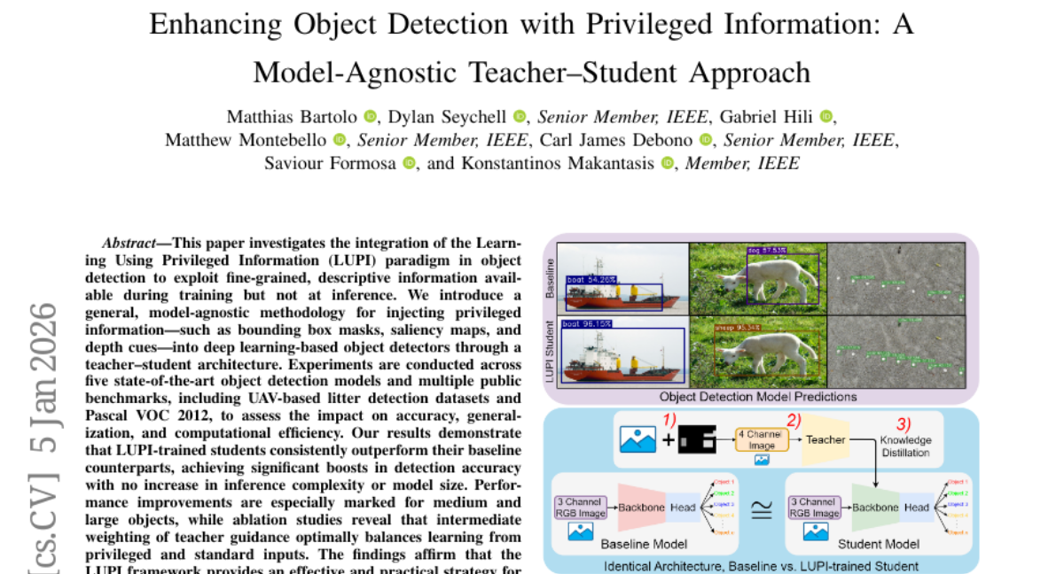 – To explore the integration of the Learning Using Privileged Information paradigm in object detection to enhance accuracy using additional training-time information without increasing inference complexity.