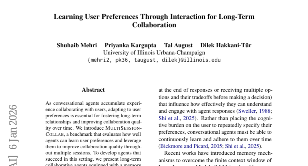 – Development of long-term collaborative agents with persistent memory for refining user preferences and leveraging user simulator behavior for agent training.