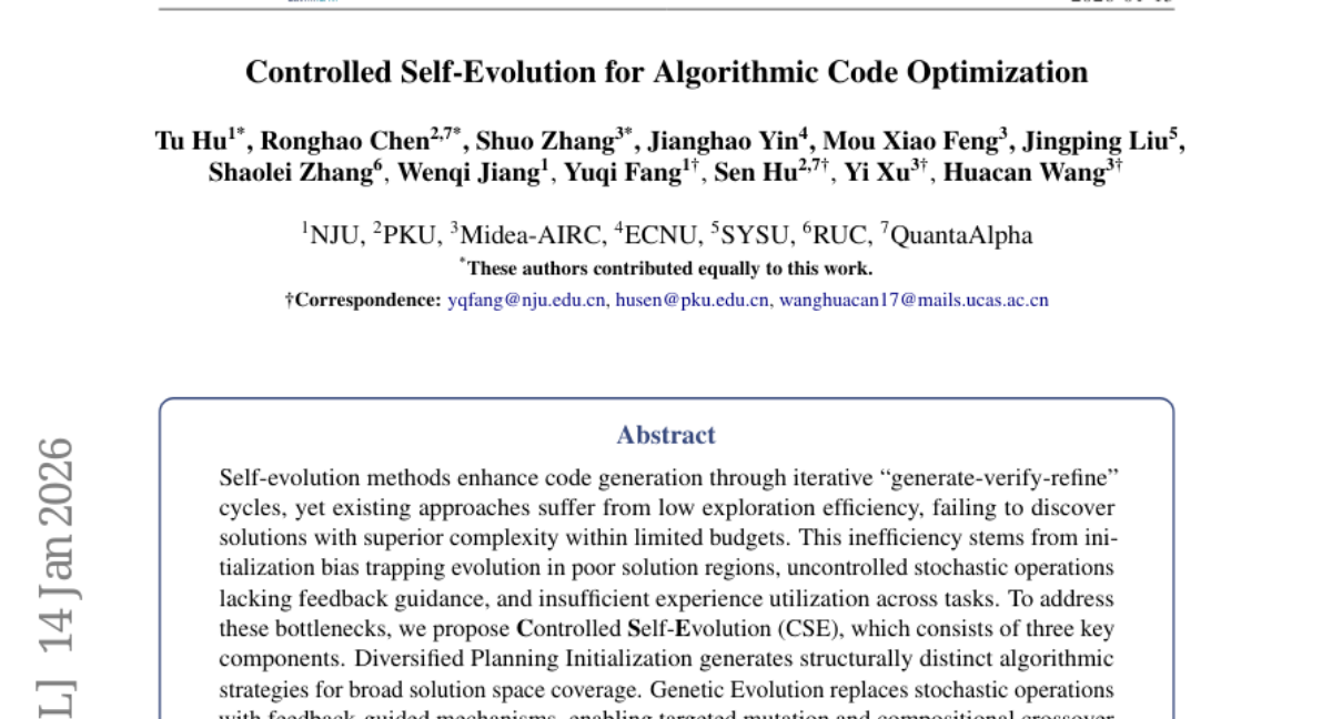 1. Controlled Self-Evolution for Algorithmic Code Optimization