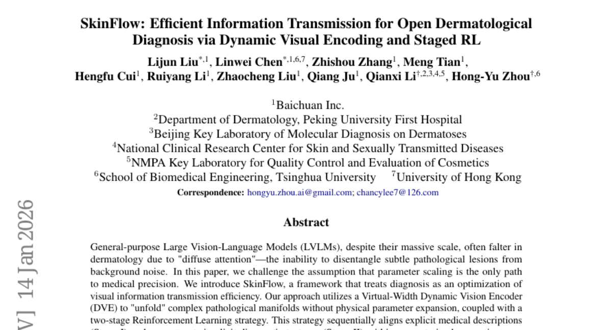 ๐ Keywords: SkinFlow, Visual Information Transmission Efficiency, Virtual-Width Dynamic Vision Encoder, Reinforcement Learning, Diagnostic Accuracy