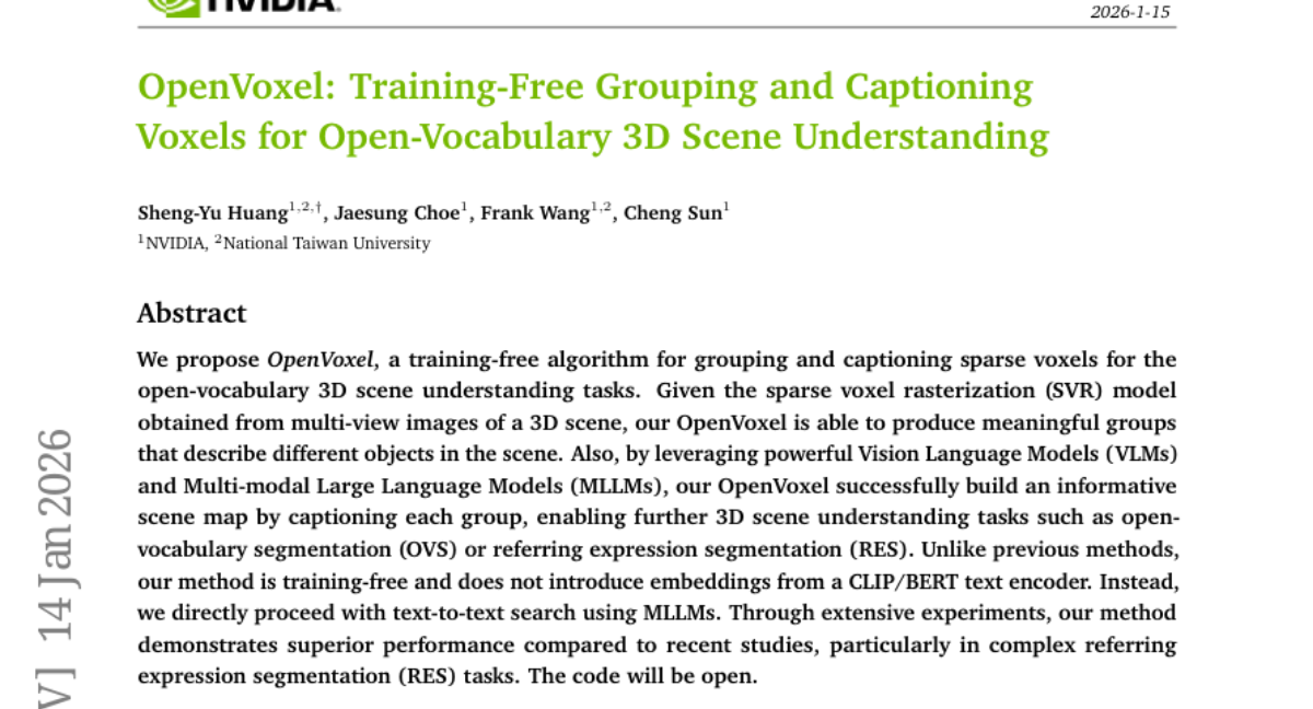 ๐ Keywords: OpenVoxel, training-free, sparse voxels, Vision Language Models, Multi-modal Large Language Models