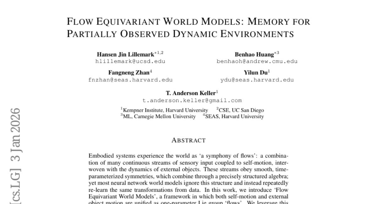– Introduction of the Flow Equivariant World Models framework leveraging group equivariance for a stable latent world representation over extensive timesteps.
