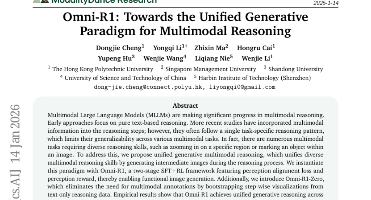 ๐ Keywords: Multimodal reasoning, Generative multimodal reasoning, SFT+RL framework, Omni-R1, Omni-R1-Zero