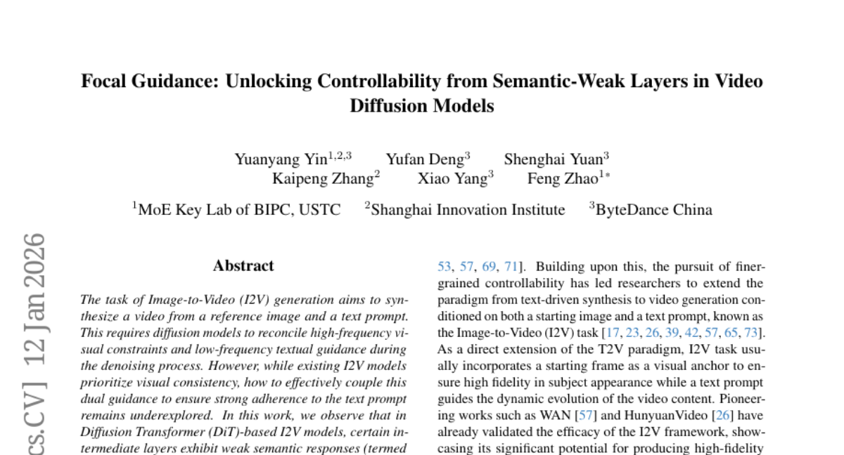 ๐ Keywords: Diffusion Transformer, Image-to-Video (I2V), Condition Isolation, Focal Guidance, Fine-grained Semantic Guidance