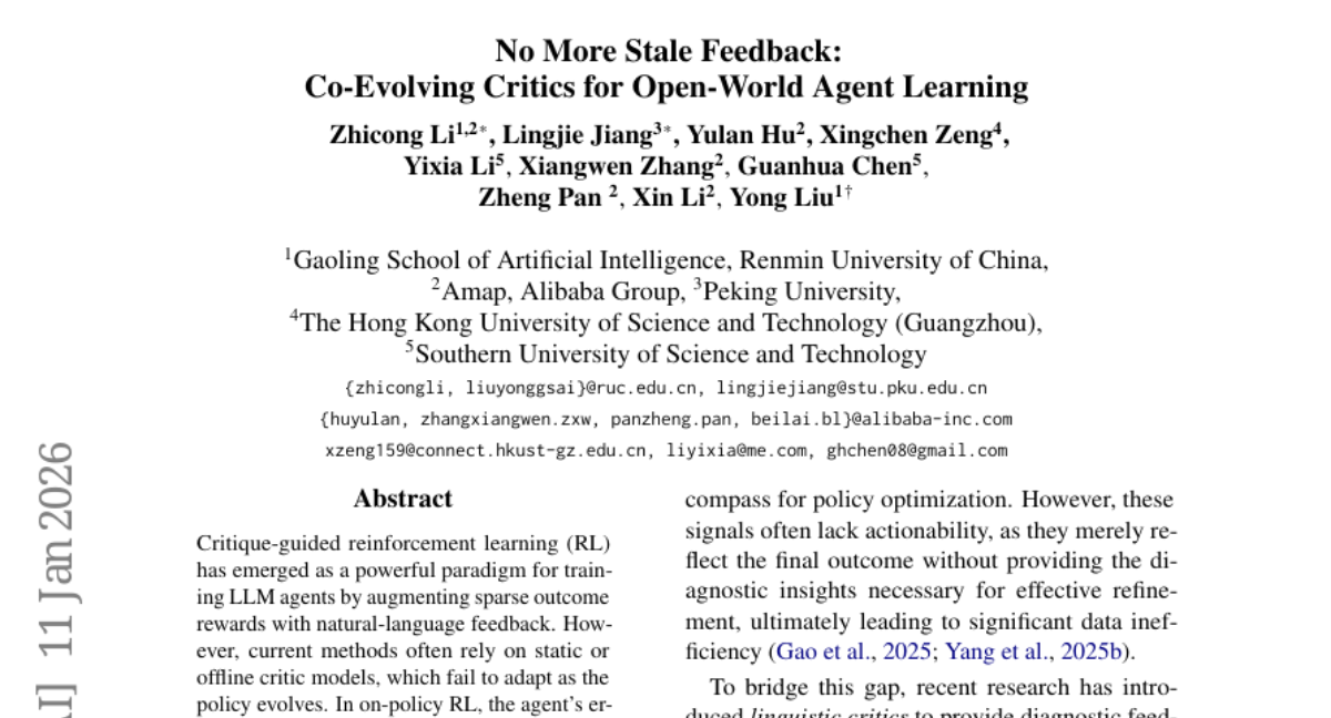 13. No More Stale Feedback: Co-Evolving Critics for Open-World Agent Learning