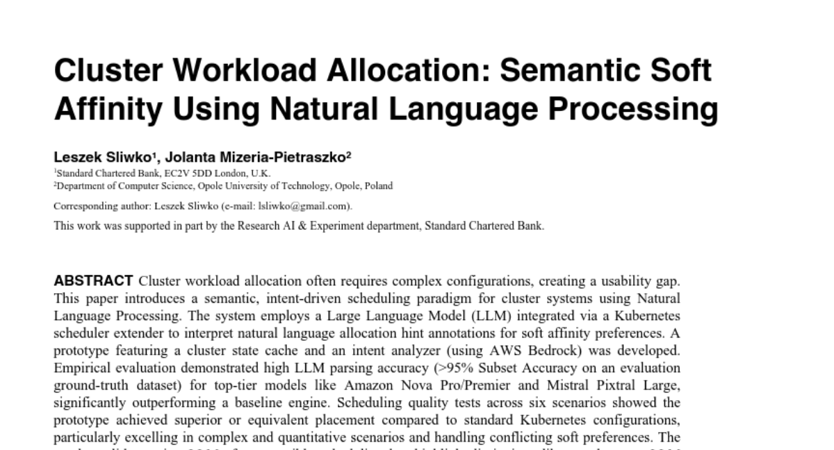 – Introduce a semantic, intent-driven scheduling approach using AI to improve workload allocation in cluster systems.
