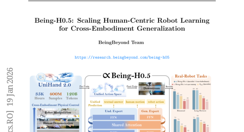 – The study introduces Being-H0.5, a Vision-Language-Action model aimed at achieving robust cross-embodiment generalization across diverse robotic platforms through a novel learning approach and architectural design.