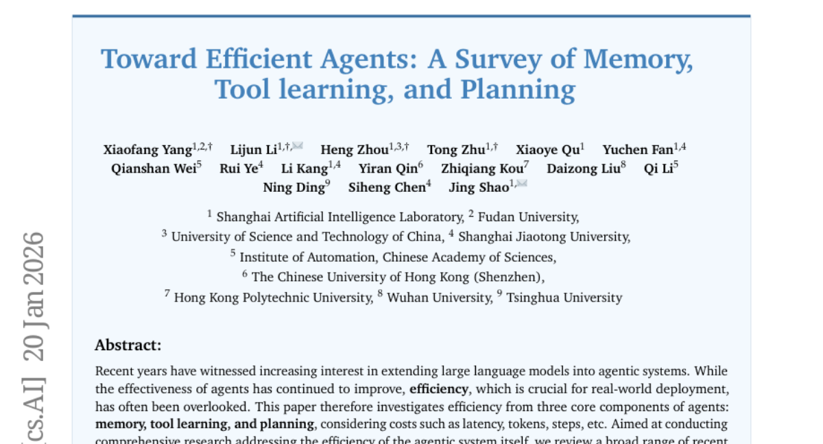 ๐Ÿ”‘ Keywords: agentic systems, large language models, efficiency, memory, tool learning