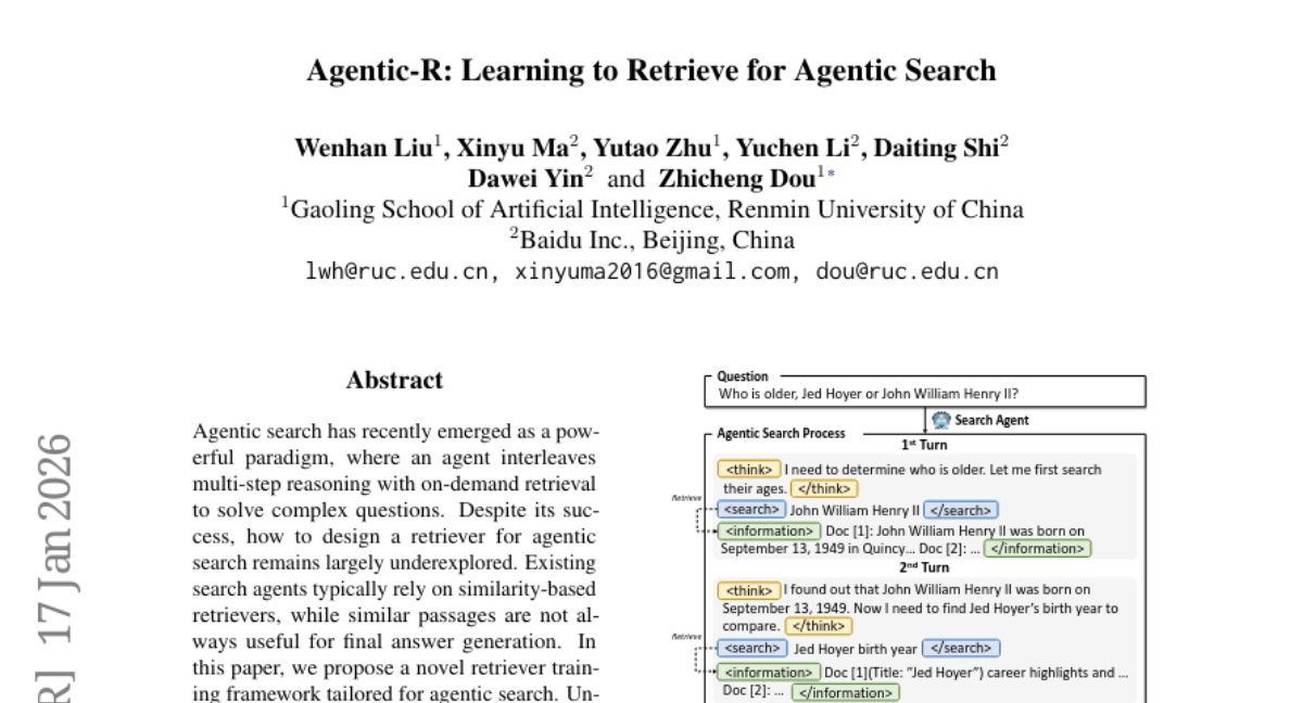 27. Agentic-R: Learning to Retrieve for Agentic Search
