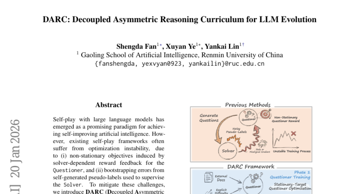 ๐Ÿ”‘ Keywords: DARC, Self-Play, Large Language Models, AI-Generated Summary, Asymmetric Self-Distillation