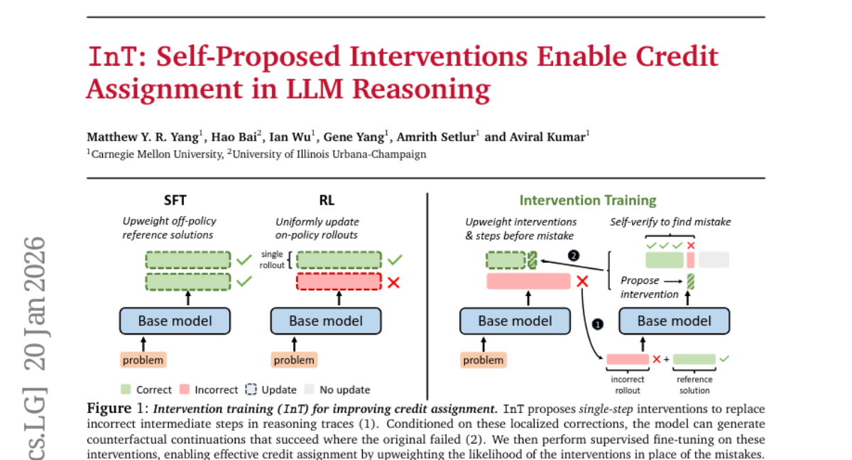 23. InT: Self-Proposed Interventions Enable Credit Assignment in LLM Reasoning