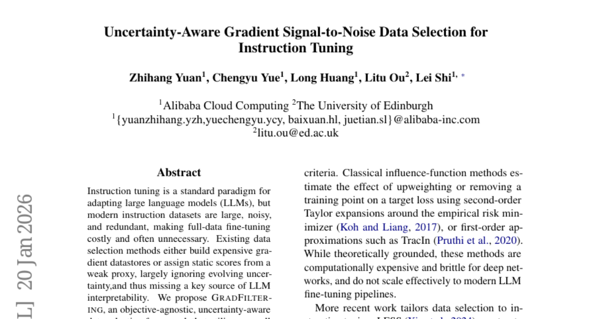 ๐Ÿ”‘ Keywords: GRADFILTERING, Instruction tuning, Large language models, Data selection, Gradient Signal-to-Noise Ratio