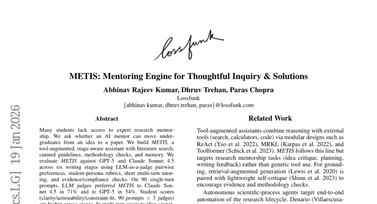 ๐Ÿ”‘ Keywords: AI mentor, Research writing, METIS, LLM judges, Stage-aware routing