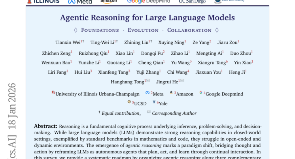 – The research organizes agentic reasoning into three layers: foundational agentic reasoning, self-evolving agentic reasoning, and collective multi-agent reasoning. It explores both in-context and post-training reasoning methods.