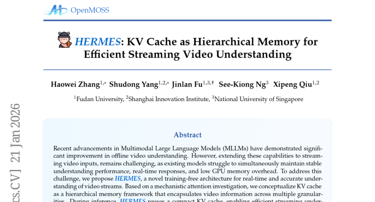 ๐ Keywords: HERMES, real-time responses, KV cache, hierarchical memory framework, video understanding