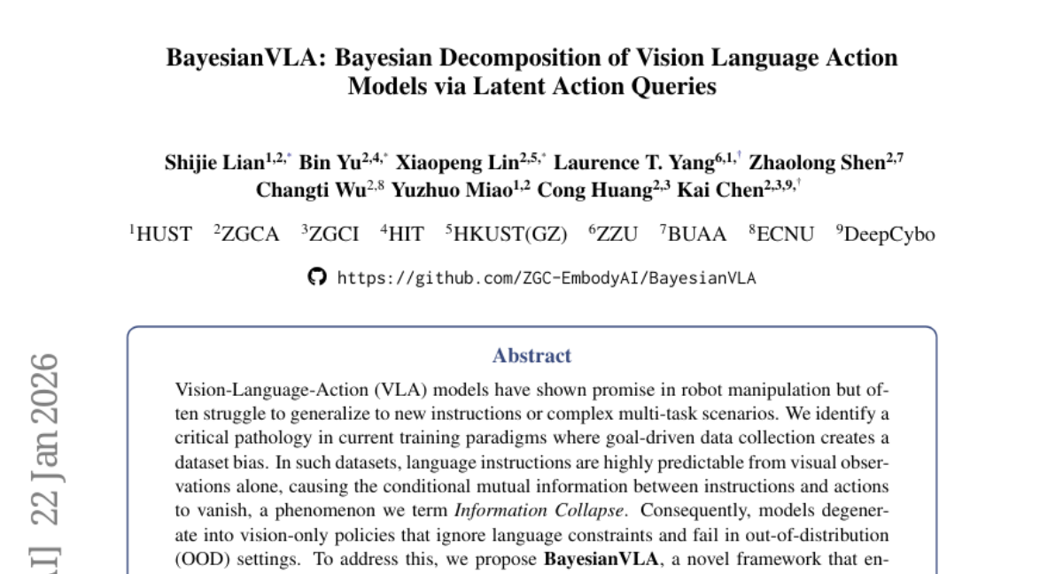 27. BayesianVLA: Bayesian Decomposition of Vision Language Action Models via Latent Action Queries