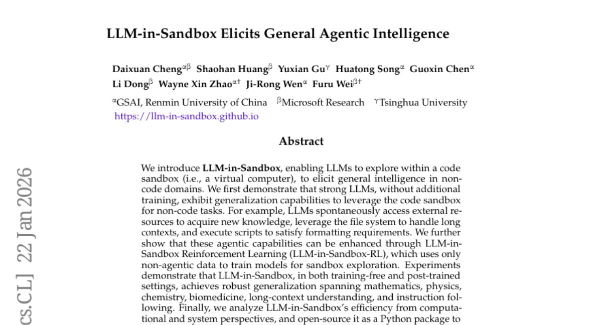 3. LLM-in-Sandbox Elicits General Agentic Intelligence