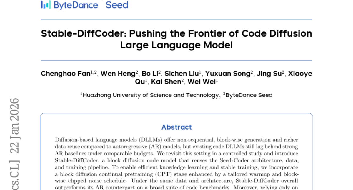 ๐ Keywords: Stable-DiffCoder, block diffusion, continual pretraining, code modeling, structured code modeling