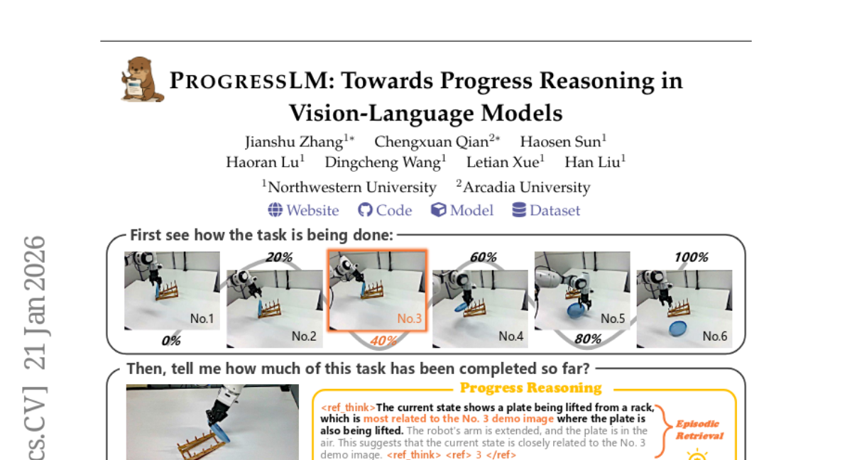 ๐ Keywords: Vision-Language Models, ProgressLM-45K, ProgressLM-3B, progress reasoning, training-free prompting