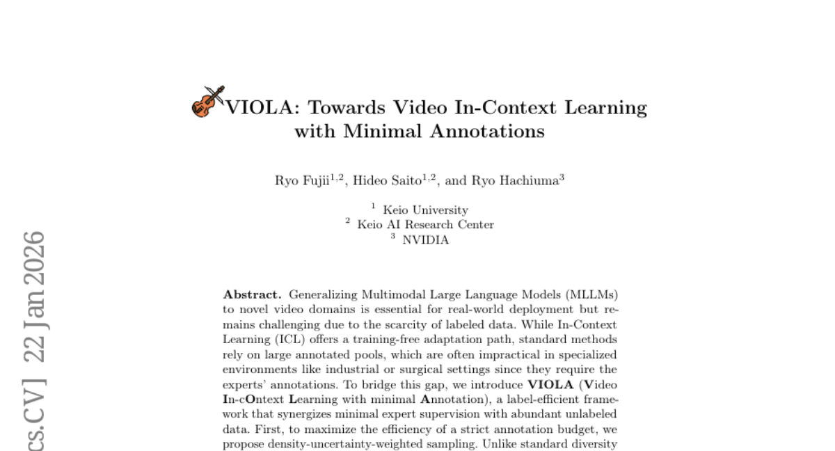– Introduce VIOLA, a framework designed to efficiently adapt multimodal large language models to low-resource video domains by reducing the need for extensive expert annotations.
